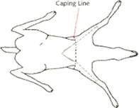 The Dorsal Cut - (For life size only). This is skinning the animal down the back. From base of tail to back of head. Then it is cut down and peeled off the carcass. Skinning down legs and cutting leg and leaving foot& leg bone in. Also leave the head and skull in hide. Taxidermist will skin these out. Then take it in or freeze ASAP.
